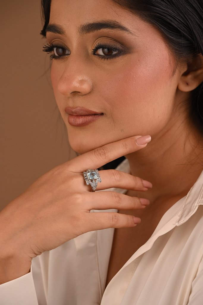 Crafted in sterling silver our hand crafted rings showcase unique flow and cuts. The central large semi precious stone is of AAA quality and is nestled between tiny