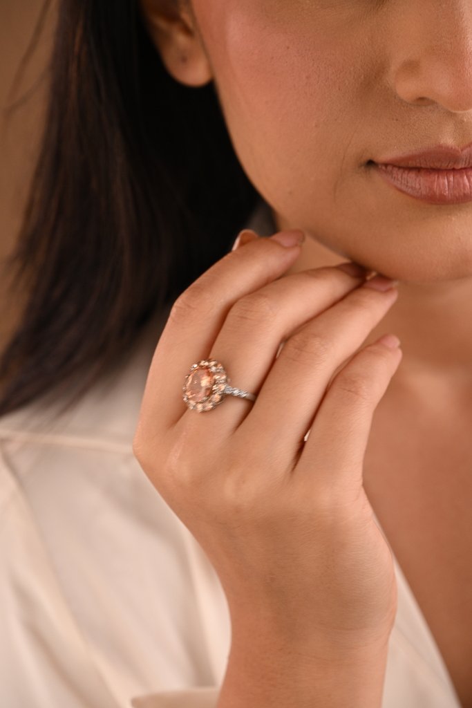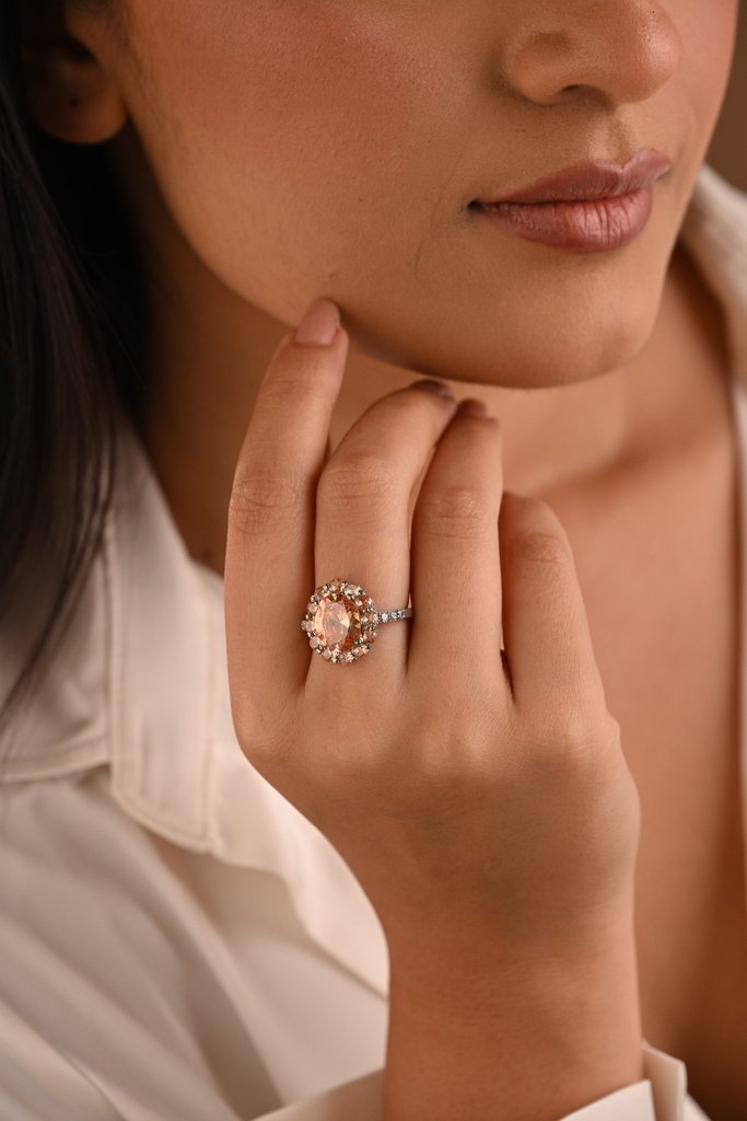 Crafted in sterling silver our hand crafted rings showcase unique flow and cuts. The central large semi precious stone is of AAA quality and is nestled between tiny complimentary crystals